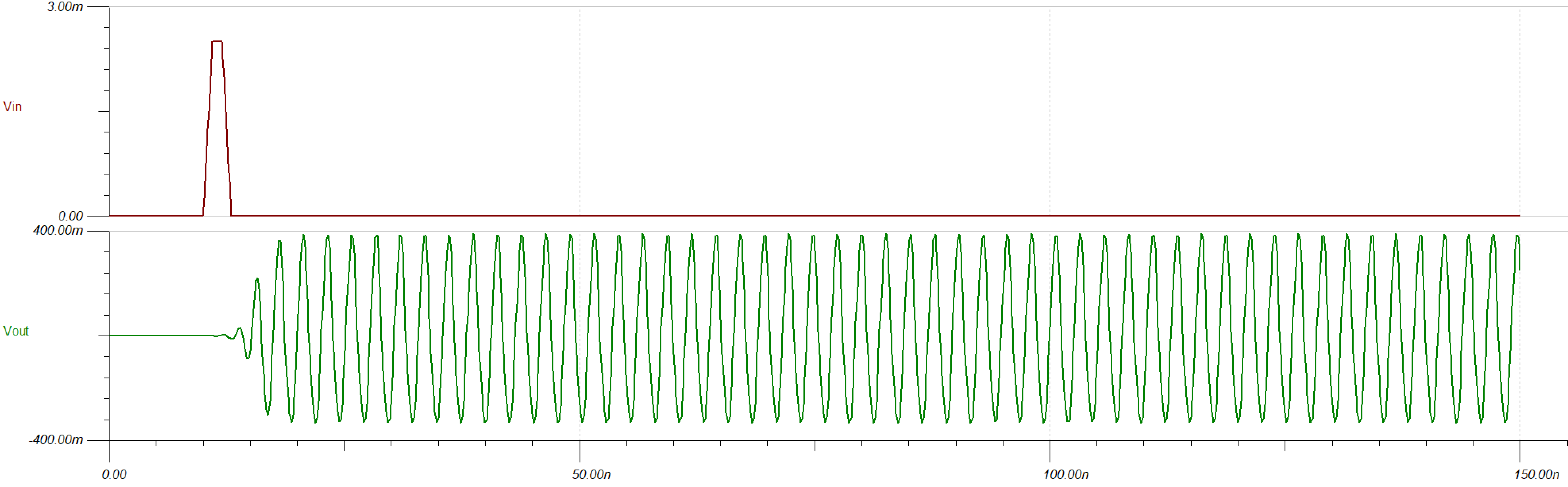 In analog electronic classes we’ve learned some amplifier systems like inverse proportionality converter, analog integrator, etc. The teacher must have mentioned about “feedback” and tell you that feedback in amplification systems is to restrict the differential signals in the linear region. However, when you build an amplification system in reality, especially for high frequency cases, you may encounter a very annoying phenomenon: oscillation. In an oscillting amplifier system, even if you do not apply any signals on the input terminal, the oscilloscope can detect signals at the output terminal, with unignorable amplitude. Typically, the output is a sinusoidal. This phenomenon is called “self-oscillation.”