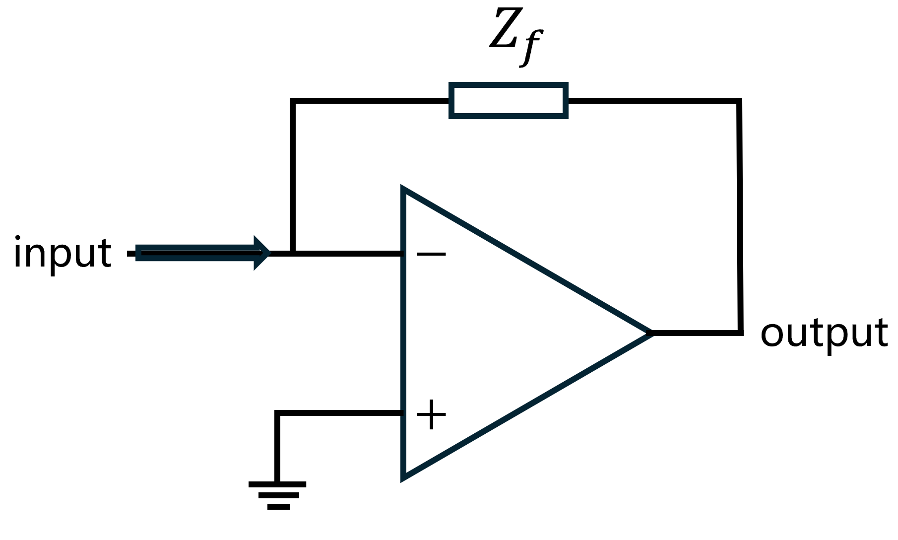 Transient impedance amplifier is a type of amplification system that transfer current signal into voltage signal. It is widely used in photoelectric detection. A fundamental inverse configuration is below.